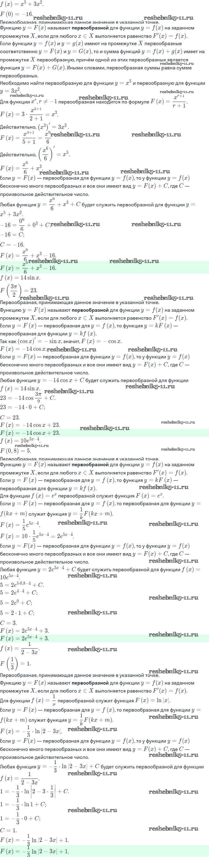 Готовая домашняя работа с ответами по Алгебре за 11 класс Мордкович, Семёнов, Денищева, Корешкова, Мишустина, Звавич Задачник Базовый и углубленный уровень Часть Мнемозина 2017 ФГОС - §20. Первообразная и неопределённый интеграл 20.25