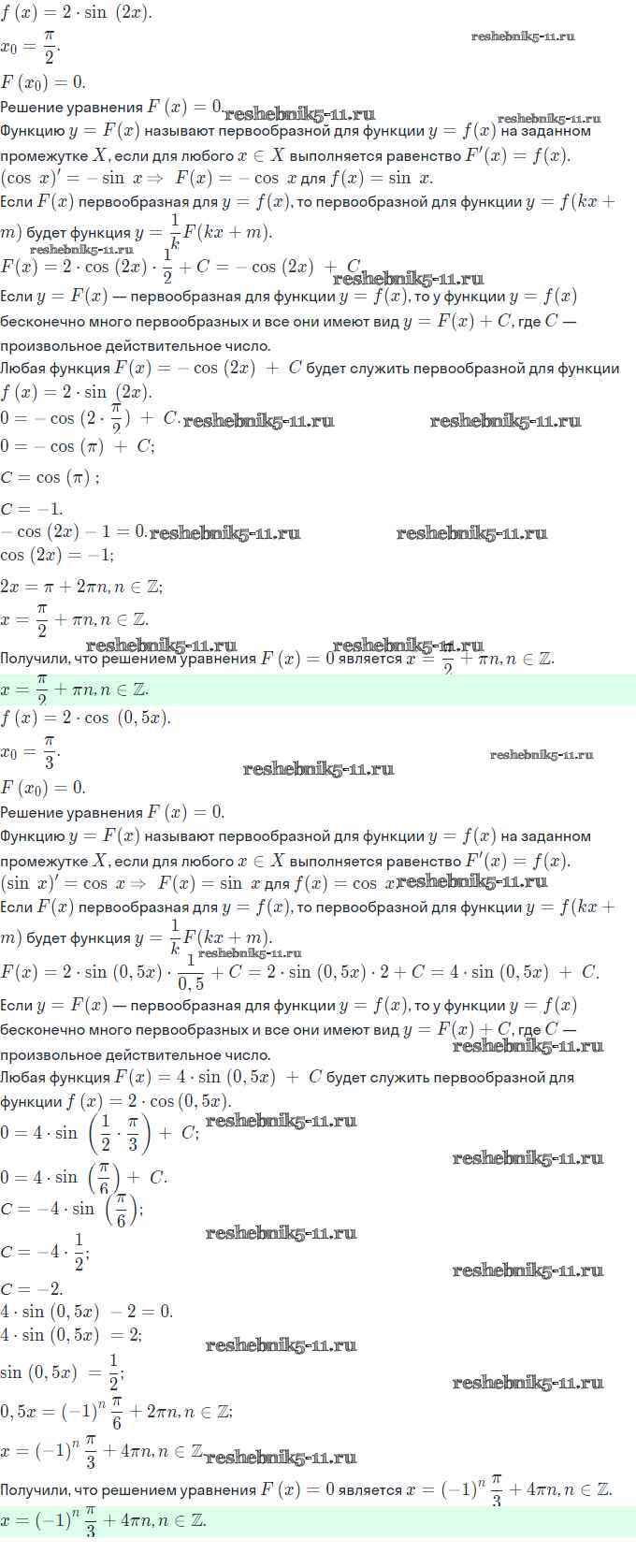 Готовая домашняя работа с ответами по Алгебре за 11 класс Мордкович, Семёнов, Денищева, Корешкова, Мишустина, Звавич Задачник Базовый и углубленный уровень Часть Мнемозина 2017 ФГОС - §20. Первообразная и неопределённый интеграл 20.29
