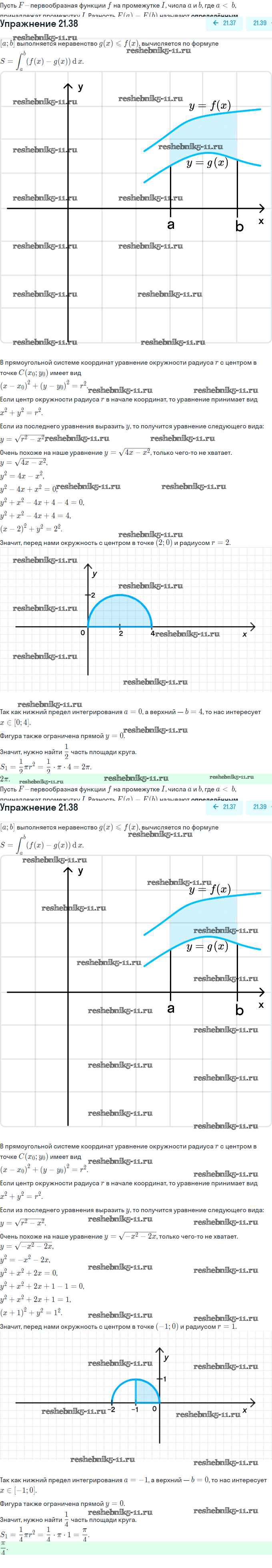 Готовая домашняя работа с ответами по Алгебре за 11 класс Мордкович, Семёнов, Денищева, Корешкова, Мишустина, Звавич Задачник Базовый и углубленный уровень Часть Мнемозина 2017 ФГОС - §21. Определённый интеграл 21.38