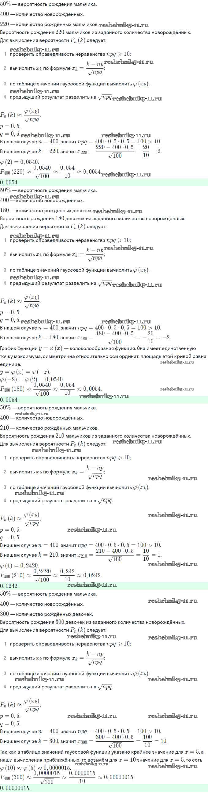 Готовая домашняя работа с ответами по Алгебре за 11 класс Мордкович, Семёнов, Денищева, Корешкова, Мишустина, Звавич Задачник Базовый и углубленный уровень Часть Мнемозина 2017 ФГОС - §25. Гауссова кривая. Закон больших чисел 25.10