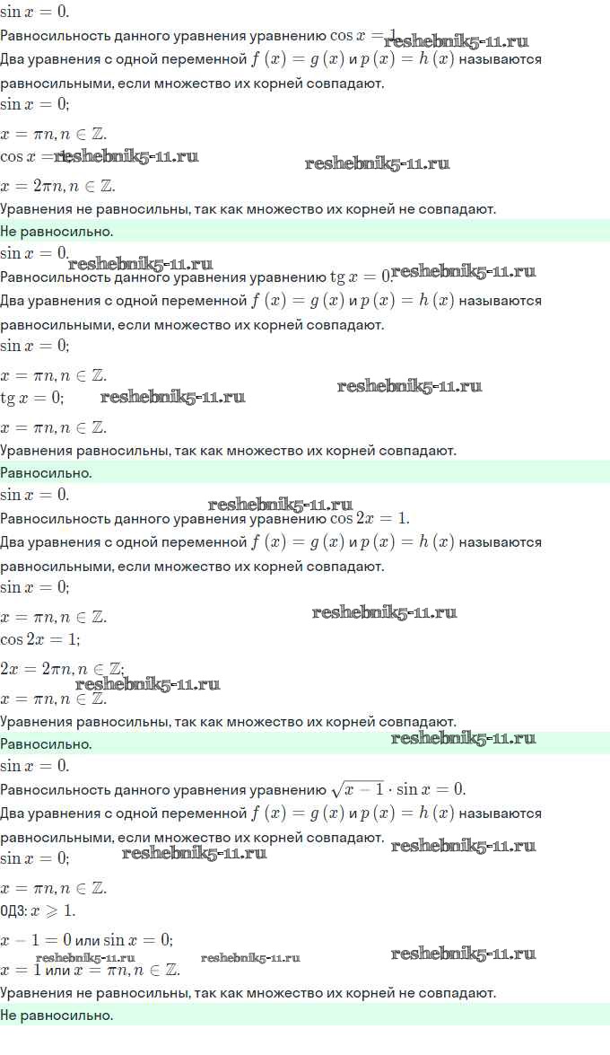 Готовая домашняя работа с ответами по Алгебре за 11 класс Мордкович, Семёнов, Денищева, Корешкова, Мишустина, Звавич Задачник Базовый и углубленный уровень Часть Мнемозина 2017 ФГОС - §26. Равносильность уравнений 26.2