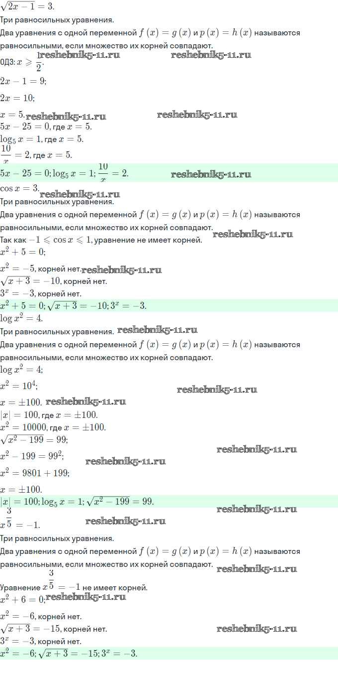 Готовая домашняя работа с ответами по Алгебре за 11 класс Мордкович, Семёнов, Денищева, Корешкова, Мишустина, Звавич Задачник Базовый и углубленный уровень Часть Мнемозина 2017 ФГОС - §26. Равносильность уравнений 26.3