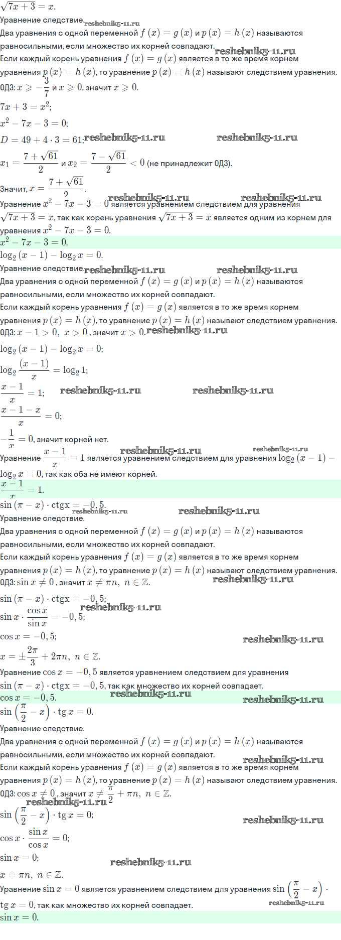 Готовая домашняя работа с ответами по Алгебре за 11 класс Мордкович, Семёнов, Денищева, Корешкова, Мишустина, Звавич Задачник Базовый и углубленный уровень Часть Мнемозина 2017 ФГОС - §26. Равносильность уравнений 26.4