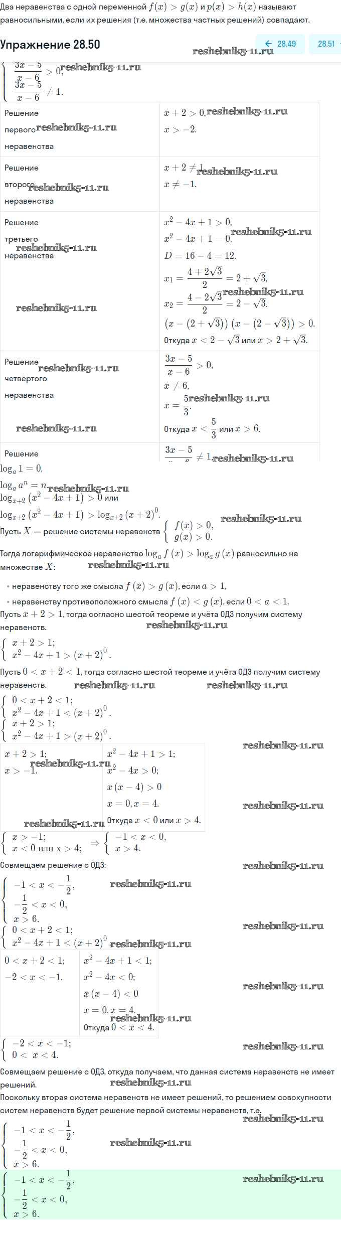 Готовая домашняя работа с ответами по Алгебре за 11 класс Мордкович, Семёнов, Денищева, Корешкова, Мишустина, Звавич Задачник Базовый и углубленный уровень Часть Мнемозина 2017 ФГОС - §28. Равносильность неравенств 28.50