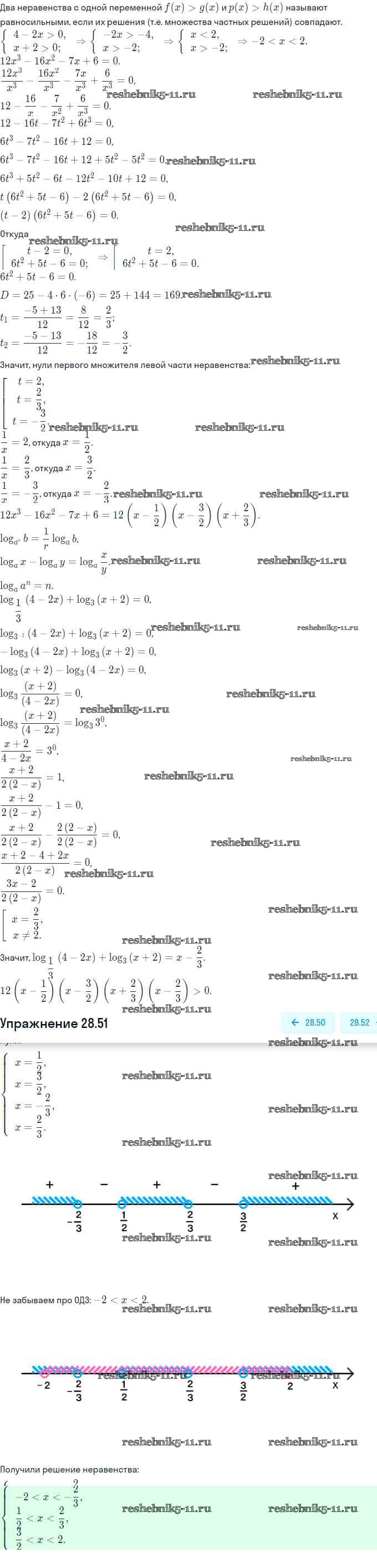 Готовая домашняя работа с ответами по Алгебре за 11 класс Мордкович, Семёнов, Денищева, Корешкова, Мишустина, Звавич Задачник Базовый и углубленный уровень Часть Мнемозина 2017 ФГОС - §28. Равносильность неравенств 28.51