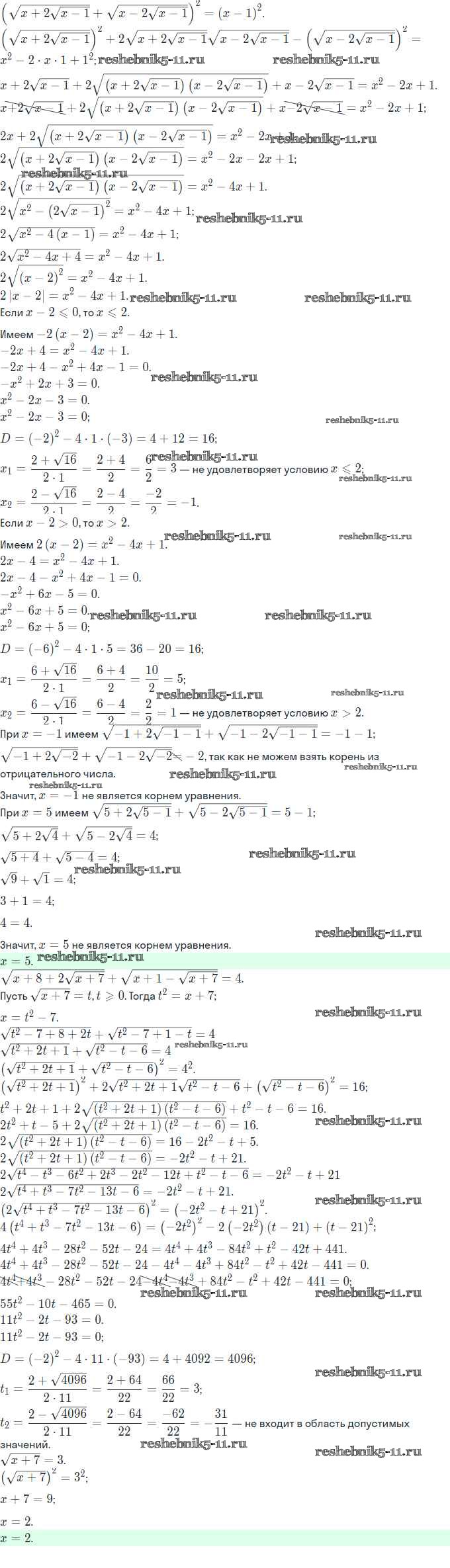 Готовая домашняя работа с ответами по Алгебре за 11 класс Мордкович, Семёнов, Денищева, Корешкова, Мишустина, Звавич Задачник Базовый и углубленный уровень Часть Мнемозина 2017 ФГОС - §30. Иррациональные уравнения и неравенства 30.25