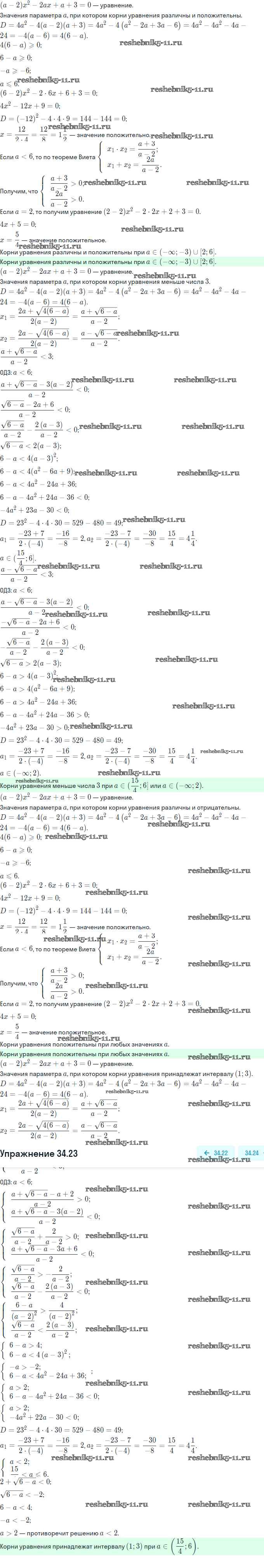 Готовая домашняя работа с ответами по Алгебре за 11 класс Мордкович, Семёнов, Денищева, Корешкова, Мишустина, Звавич Задачник Базовый и углубленный уровень Часть Мнемозина 2017 ФГОС - §34. Задачи с параметрами 34.23