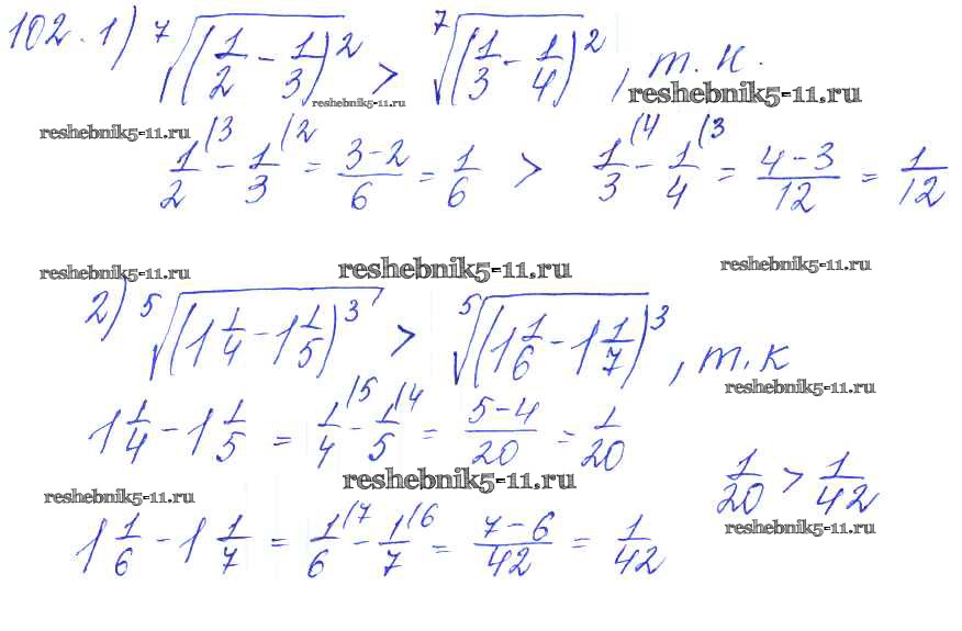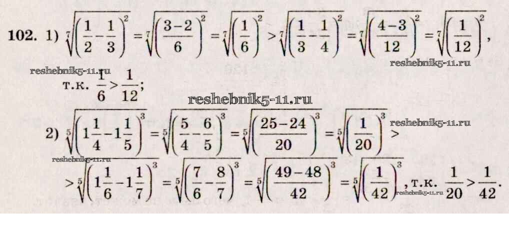 Готовая домашняя работа с ответами по Алгебре за 10, 11 класс Алимов, Ткачева, Колягин, Федорова, Шабунин Учебник Базовый и углубленный уровень Просвещение 2015 ФГОС - Упражнения 102