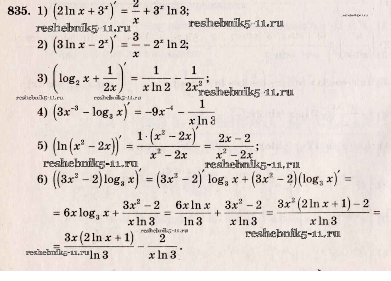 Готовая домашняя работа с ответами по Алгебре за 10, 11 класс Алимов, Ткачева, Колягин, Федорова, Шабунин Учебник Базовый и углубленный уровень Просвещение 2015 ФГОС - Упражнения 835