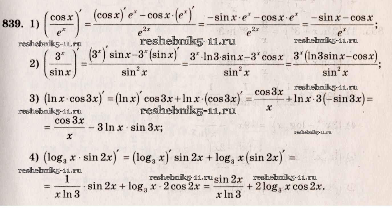 Готовая домашняя работа с ответами по Алгебре за 10, 11 класс Алимов, Ткачева, Колягин, Федорова, Шабунин Учебник Базовый и углубленный уровень Просвещение 2015 ФГОС - Упражнения 839
