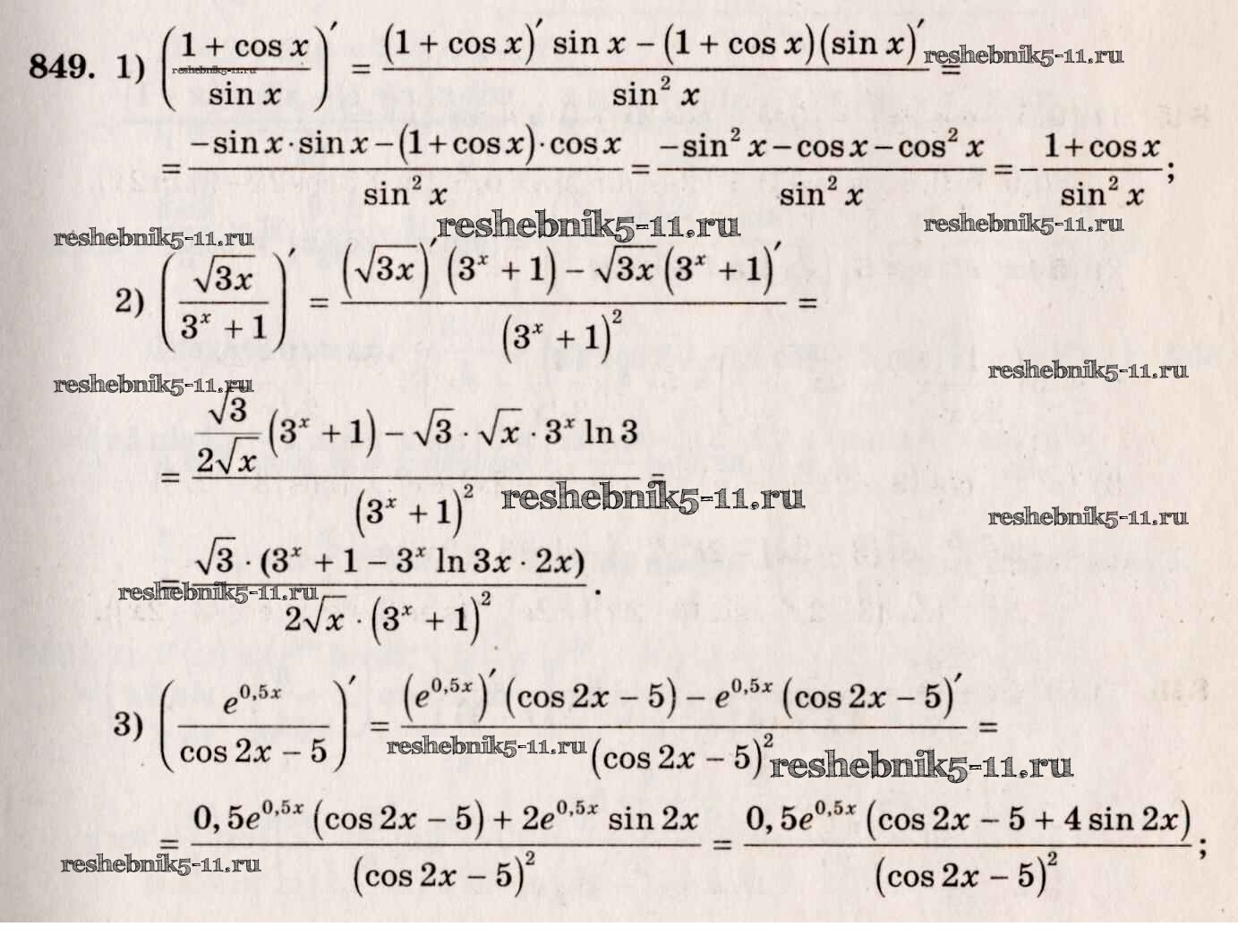 Готовая домашняя работа с ответами по Алгебре за 10, 11 класс Алимов, Ткачева, Колягин, Федорова, Шабунин Учебник Базовый и углубленный уровень Просвещение 2015 ФГОС - Упражнения 849
