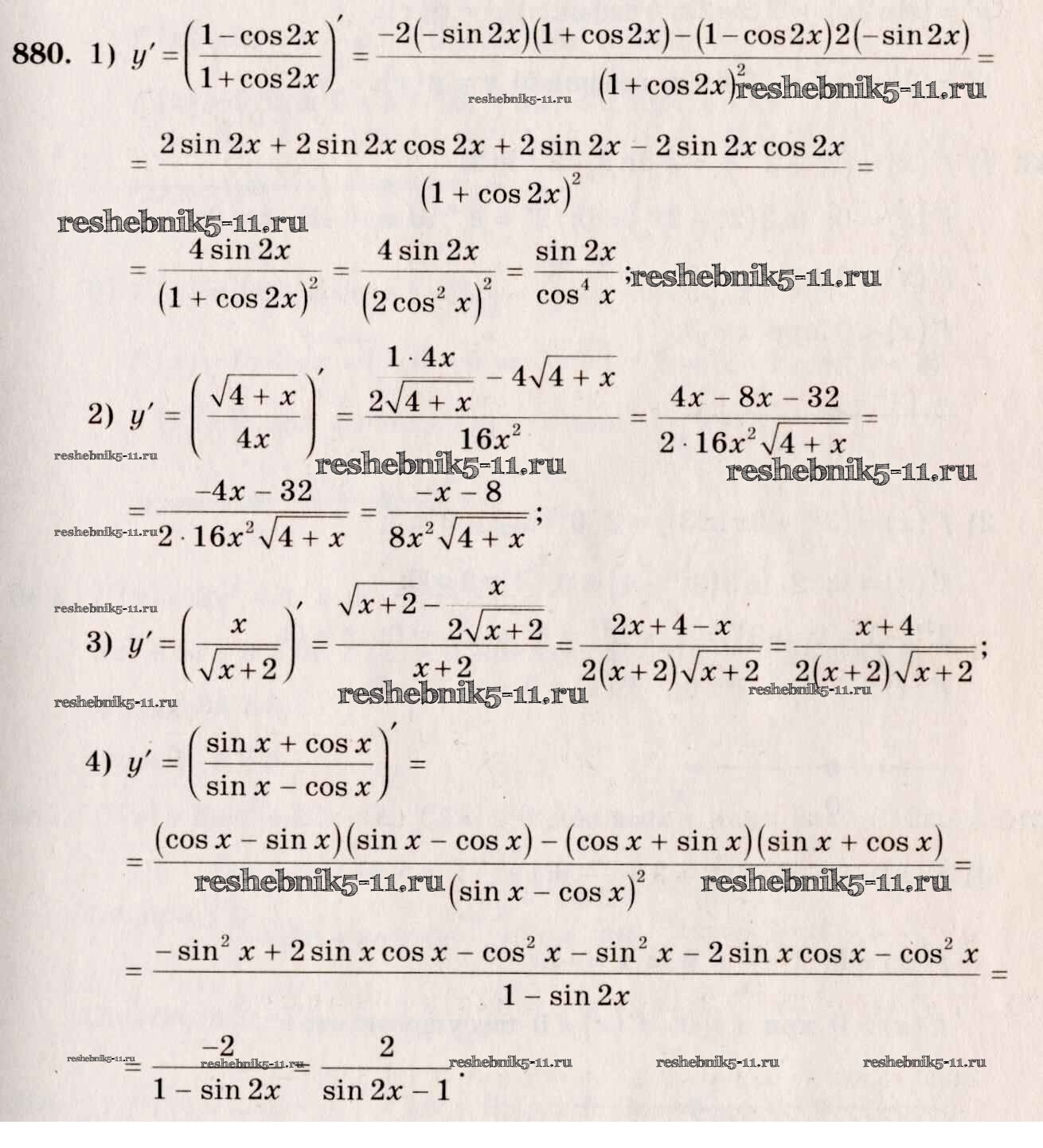 Готовая домашняя работа с ответами по Алгебре за 10, 11 класс Алимов, Ткачева, Колягин, Федорова, Шабунин Учебник Базовый и углубленный уровень Просвещение 2015 ФГОС - Упражнения 880