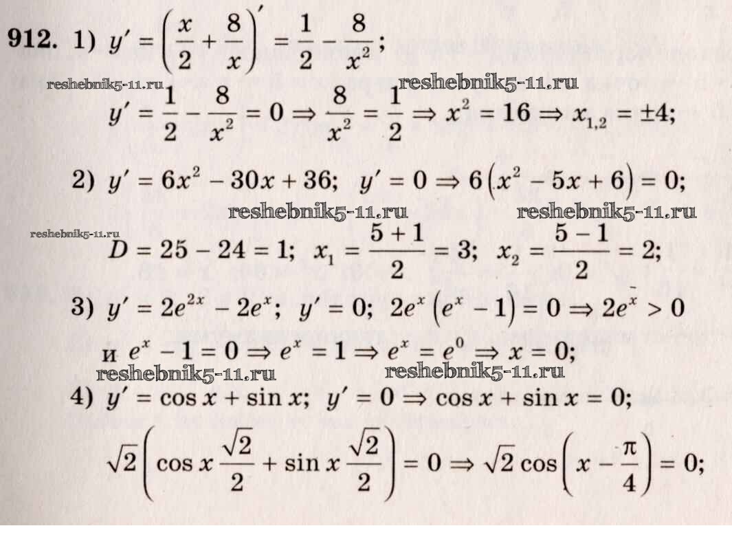 Готовая домашняя работа с ответами по Алгебре за 10, 11 класс Алимов, Ткачева, Колягин, Федорова, Шабунин Учебник Базовый и углубленный уровень Просвещение 2015 ФГОС - Упражнения 912