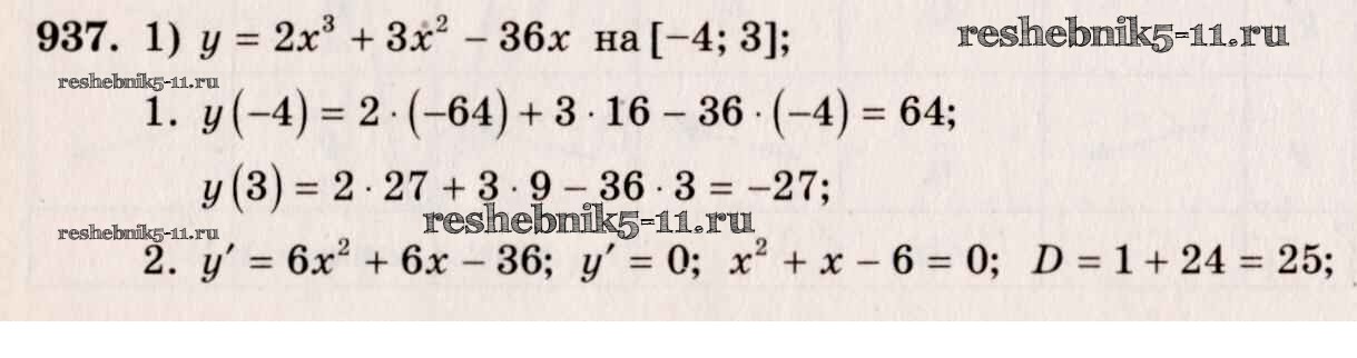 Готовая домашняя работа с ответами по Алгебре за 10, 11 класс Алимов, Ткачева, Колягин, Федорова, Шабунин Учебник Базовый и углубленный уровень Просвещение 2015 ФГОС - Упражнения 937