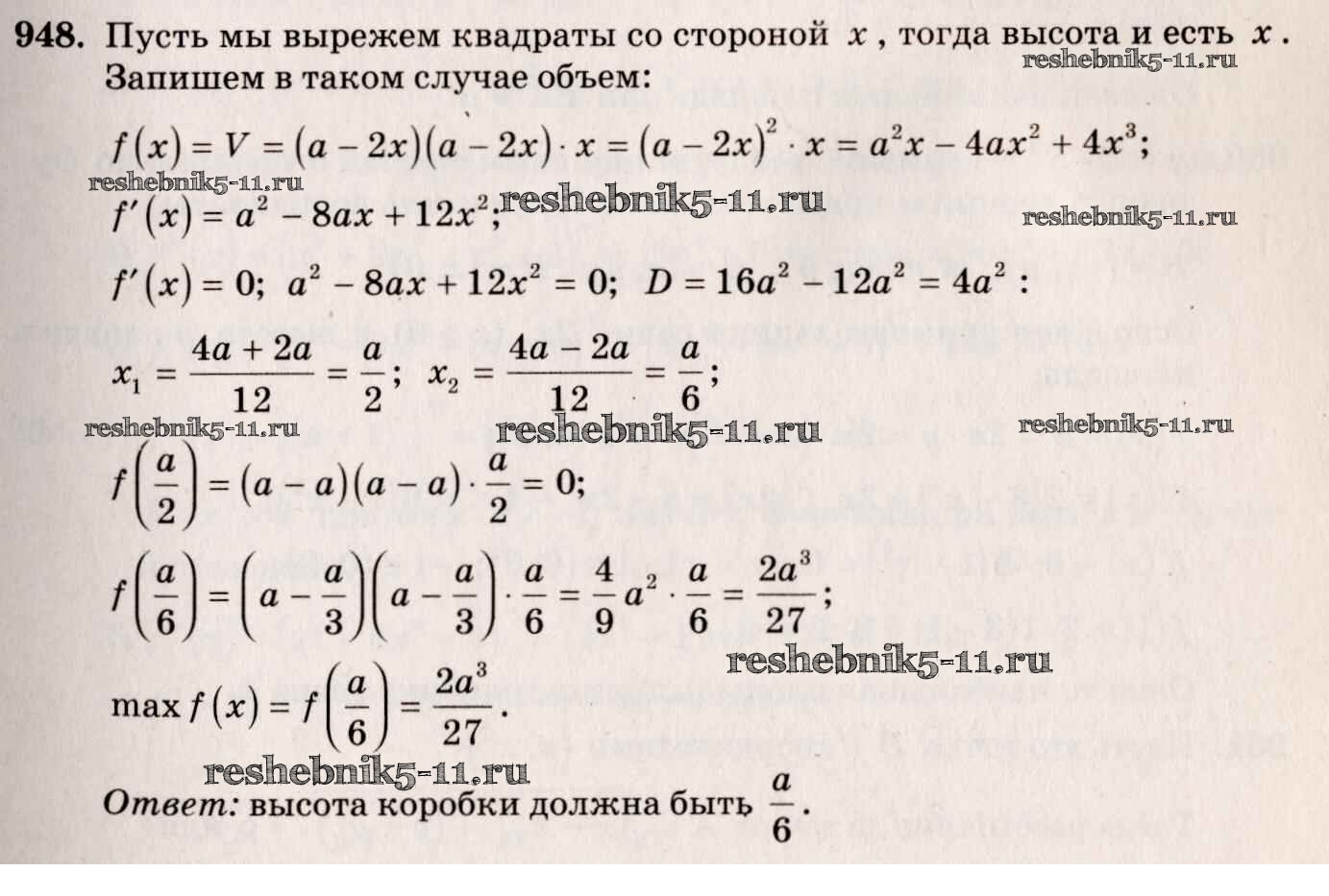 Готовая домашняя работа с ответами по Алгебре за 10, 11 класс Алимов, Ткачева, Колягин, Федорова, Шабунин Учебник Базовый и углубленный уровень Просвещение 2015 ФГОС - Упражнения 948