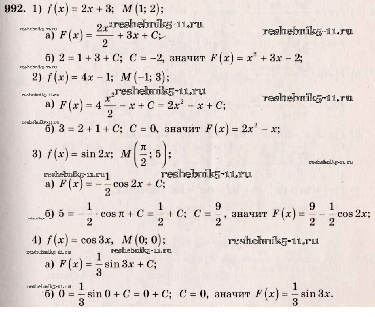 Готовая домашняя работа с ответами по Алгебре за 10, 11 класс Алимов, Ткачева, Колягин, Федорова, Шабунин Учебник Базовый и углубленный уровень Просвещение 2015 ФГОС - Упражнения 992