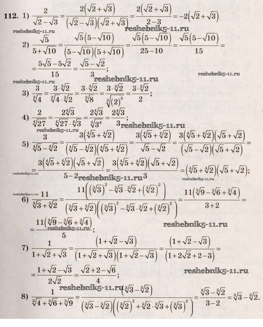 Готовая домашняя работа с ответами по Алгебре за 10, 11 класс Алимов, Ткачева, Колягин, Федорова, Шабунин Учебник Базовый и углубленный уровень Просвещение 2015 ФГОС - Упражнения 112