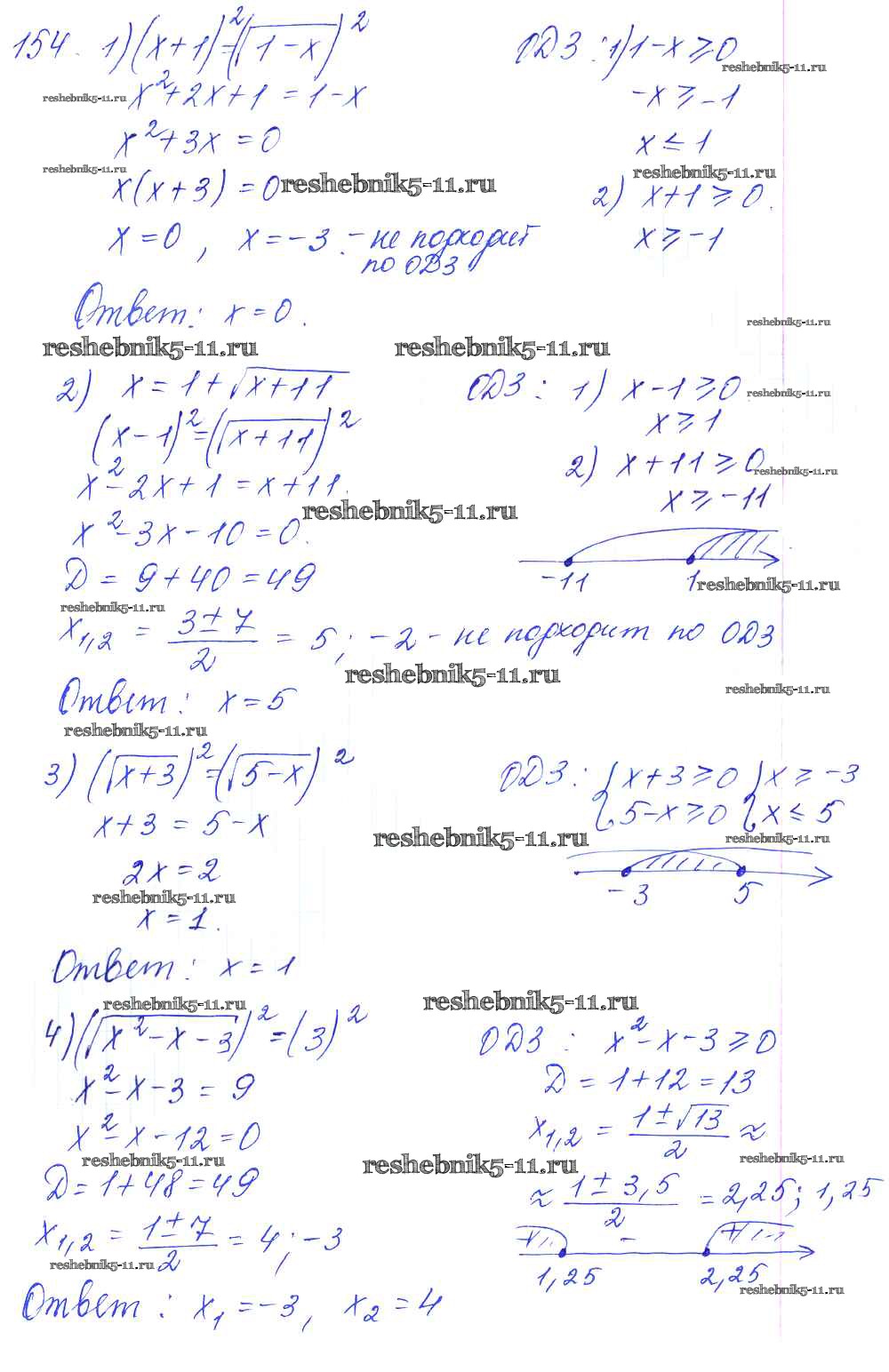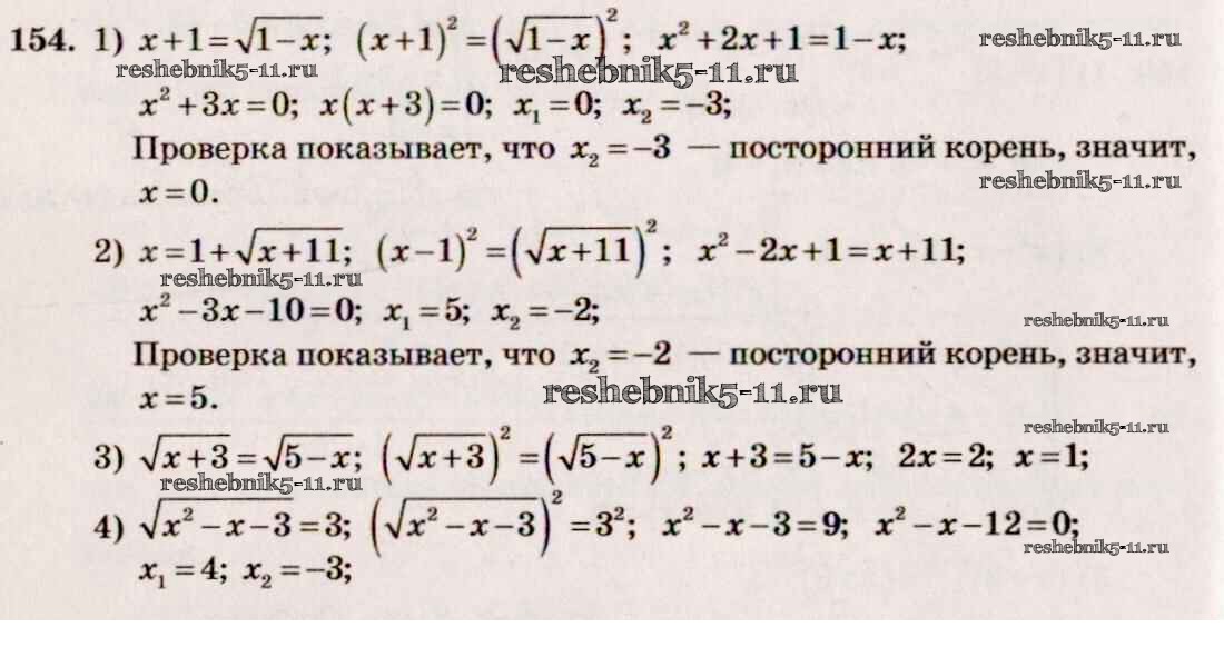 Готовая домашняя работа с ответами по Алгебре за 10, 11 класс Алимов, Ткачева, Колягин, Федорова, Шабунин Учебник Базовый и углубленный уровень Просвещение 2015 ФГОС - Упражнения 154