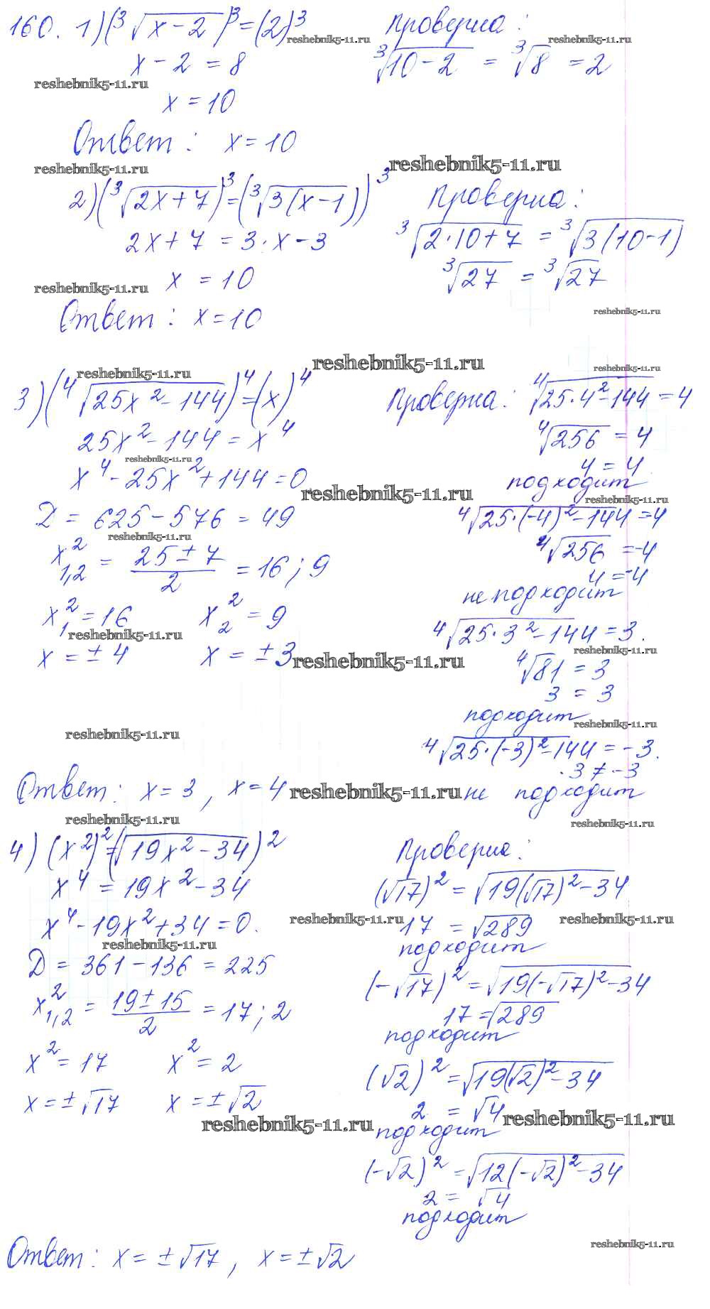 Готовая домашняя работа с ответами по Алгебре за 10, 11 класс Алимов, Ткачева, Колягин, Федорова, Шабунин Учебник Базовый и углубленный уровень Просвещение 2015 ФГОС - Упражнения 160