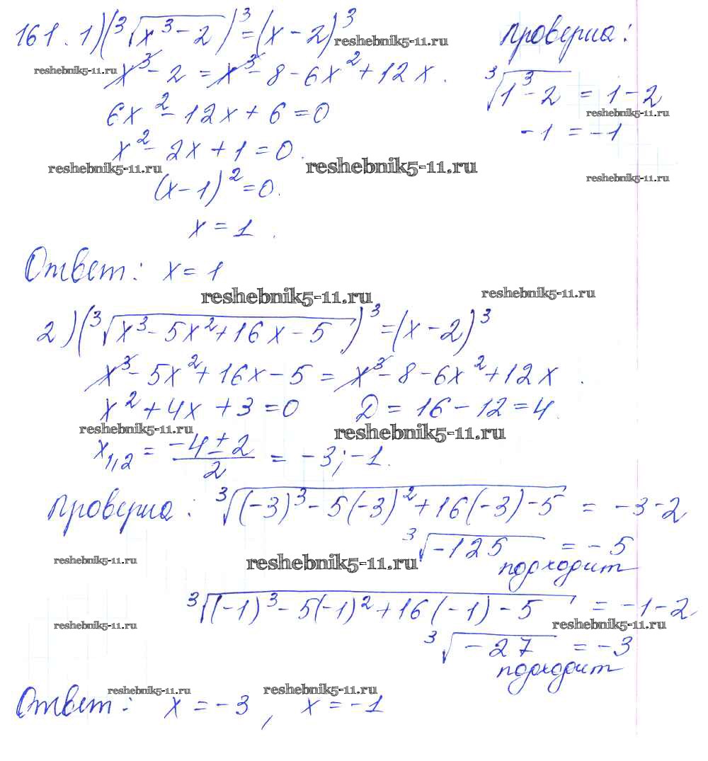 Готовая домашняя работа с ответами по Алгебре за 10, 11 класс Алимов, Ткачева, Колягин, Федорова, Шабунин Учебник Базовый и углубленный уровень Просвещение 2015 ФГОС - Упражнения 161