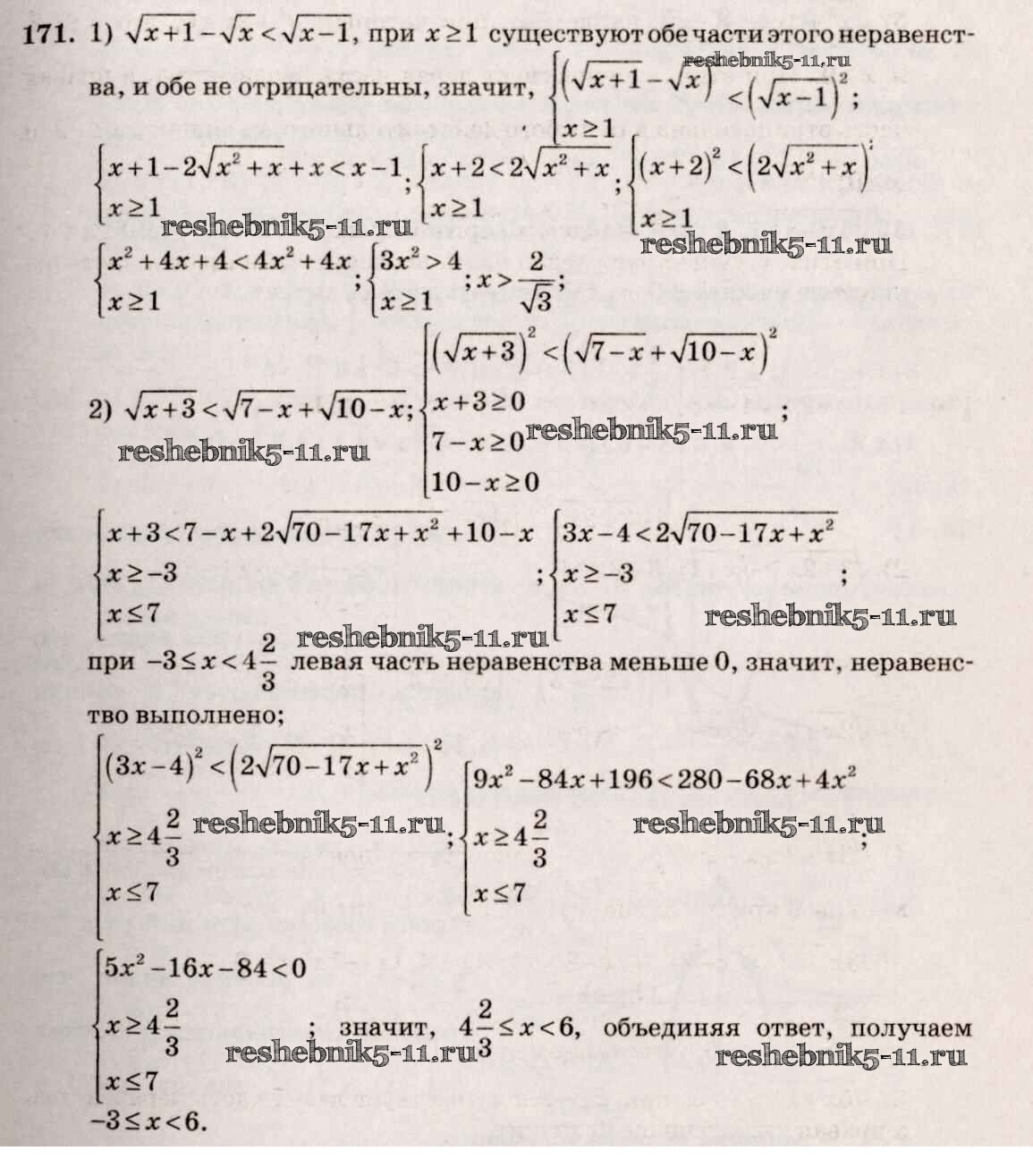 Готовая домашняя работа с ответами по Алгебре за 10, 11 класс Алимов, Ткачева, Колягин, Федорова, Шабунин Учебник Базовый и углубленный уровень Просвещение 2015 ФГОС - Упражнения 171