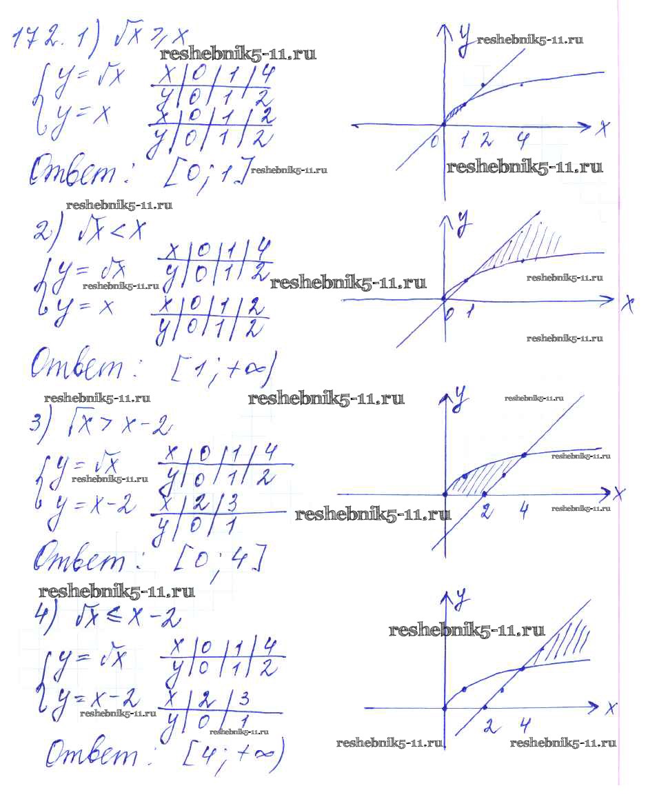Готовая домашняя работа с ответами по Алгебре за 10, 11 класс Алимов, Ткачева, Колягин, Федорова, Шабунин Учебник Базовый и углубленный уровень Просвещение 2015 ФГОС - Упражнения 172