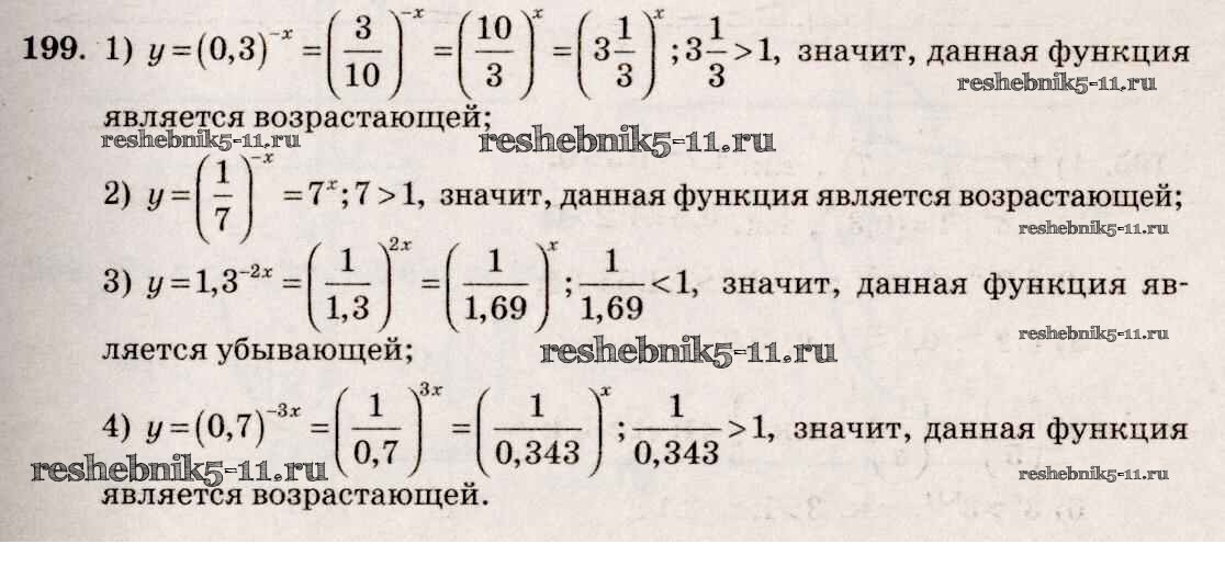 Готовая домашняя работа с ответами по Алгебре за 10, 11 класс Алимов, Ткачева, Колягин, Федорова, Шабунин Учебник Базовый и углубленный уровень Просвещение 2015 ФГОС - Упражнения 199