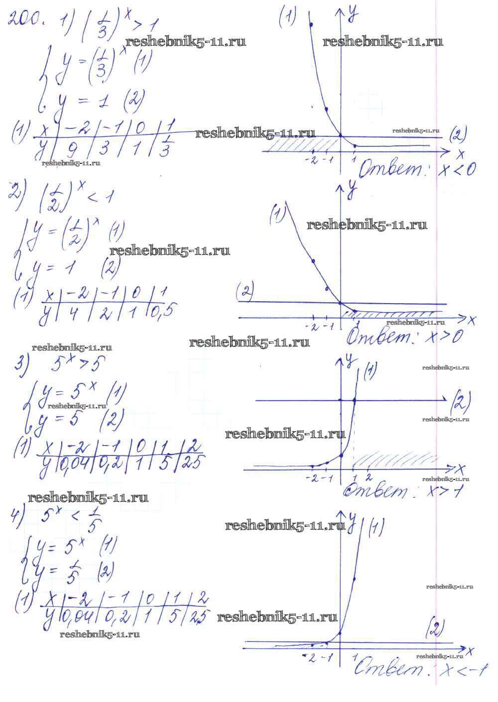 Готовая домашняя работа с ответами по Алгебре за 10, 11 класс Алимов, Ткачева, Колягин, Федорова, Шабунин Учебник Базовый и углубленный уровень Просвещение 2015 ФГОС - Упражнения 200