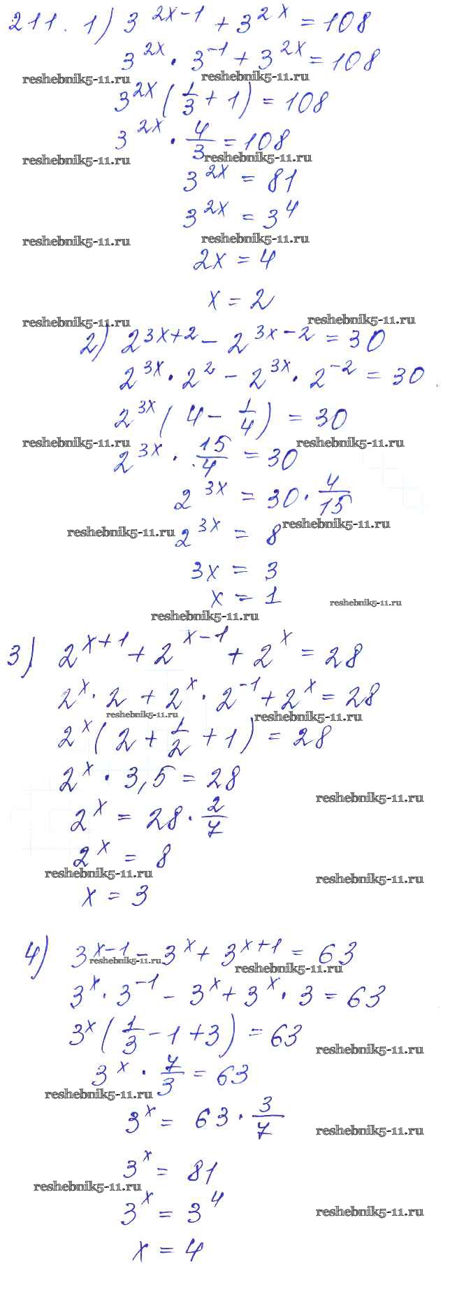 Готовая домашняя работа с ответами по Алгебре за 10, 11 класс Алимов, Ткачева, Колягин, Федорова, Шабунин Учебник Базовый и углубленный уровень Просвещение 2015 ФГОС - Упражнения 211