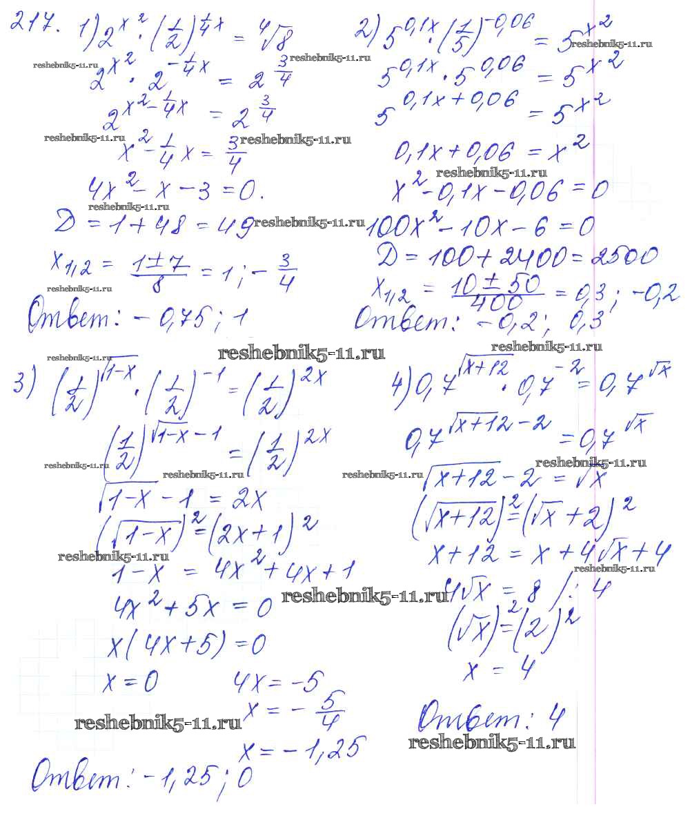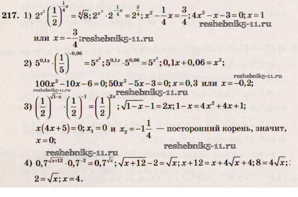 Готовая домашняя работа с ответами по Алгебре за 10, 11 класс Алимов, Ткачева, Колягин, Федорова, Шабунин Учебник Базовый и углубленный уровень Просвещение 2015 ФГОС - Упражнения 217