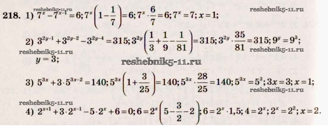 Готовая домашняя работа с ответами по Алгебре за 10, 11 класс Алимов, Ткачева, Колягин, Федорова, Шабунин Учебник Базовый и углубленный уровень Просвещение 2015 ФГОС - Упражнения 218