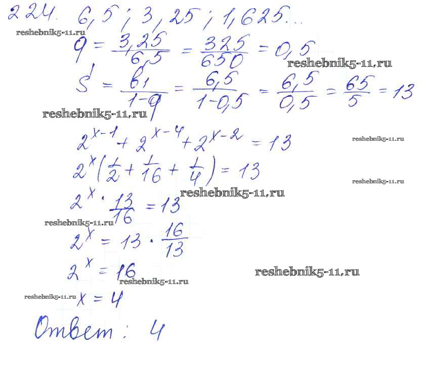 Готовая домашняя работа с ответами по Алгебре за 10, 11 класс Алимов, Ткачева, Колягин, Федорова, Шабунин Учебник Базовый и углубленный уровень Просвещение 2015 ФГОС - Упражнения 224