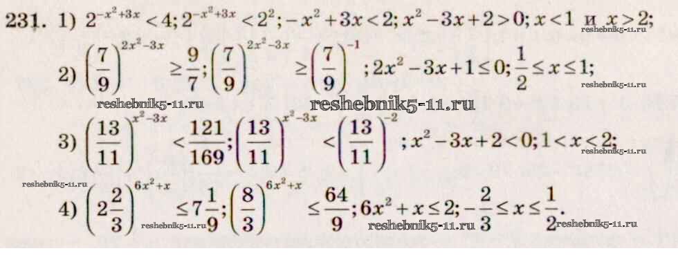 Готовая домашняя работа с ответами по Алгебре за 10, 11 класс Алимов, Ткачева, Колягин, Федорова, Шабунин Учебник Базовый и углубленный уровень Просвещение 2015 ФГОС - Упражнения 231