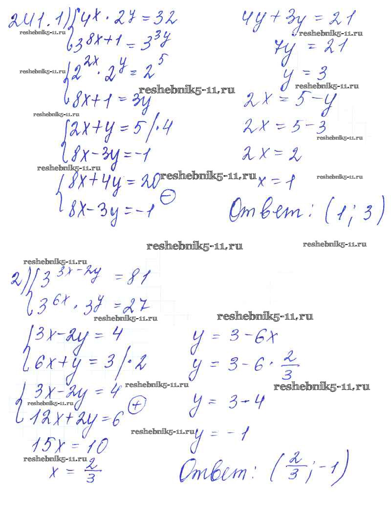 Готовая домашняя работа с ответами по Алгебре за 10, 11 класс Алимов, Ткачева, Колягин, Федорова, Шабунин Учебник Базовый и углубленный уровень Просвещение 2015 ФГОС - Упражнения 241