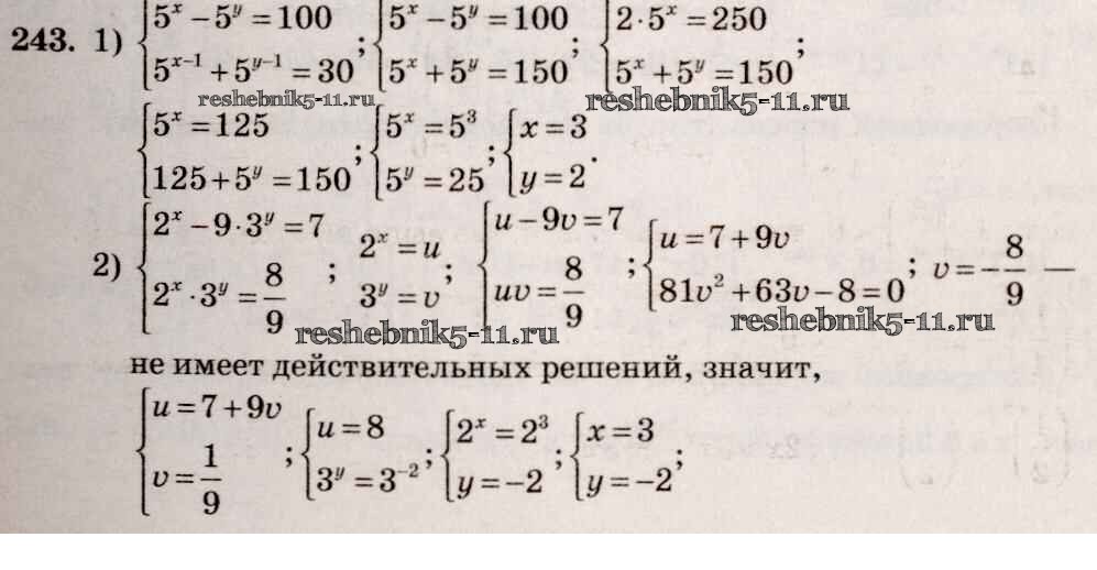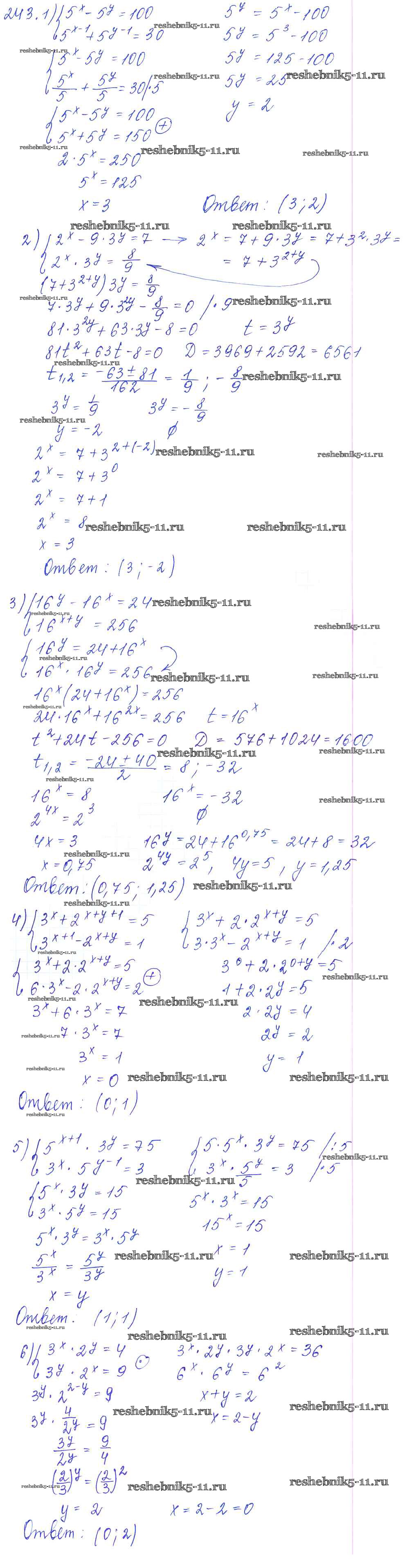Готовая домашняя работа с ответами по Алгебре за 10, 11 класс Алимов, Ткачева, Колягин, Федорова, Шабунин Учебник Базовый и углубленный уровень Просвещение 2015 ФГОС - Упражнения 243