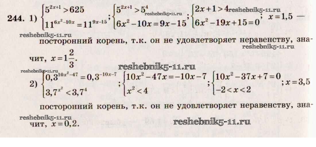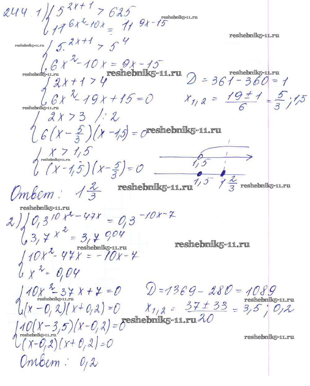 Готовая домашняя работа с ответами по Алгебре за 10, 11 класс Алимов, Ткачева, Колягин, Федорова, Шабунин Учебник Базовый и углубленный уровень Просвещение 2015 ФГОС - Упражнения 244