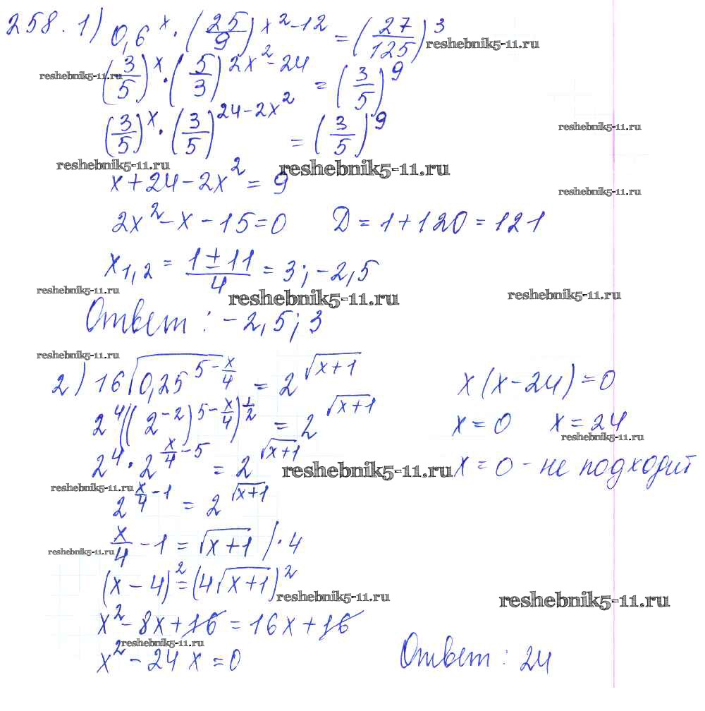 Готовая домашняя работа с ответами по Алгебре за 10, 11 класс Алимов, Ткачева, Колягин, Федорова, Шабунин Учебник Базовый и углубленный уровень Просвещение 2015 ФГОС - Упражнения 258