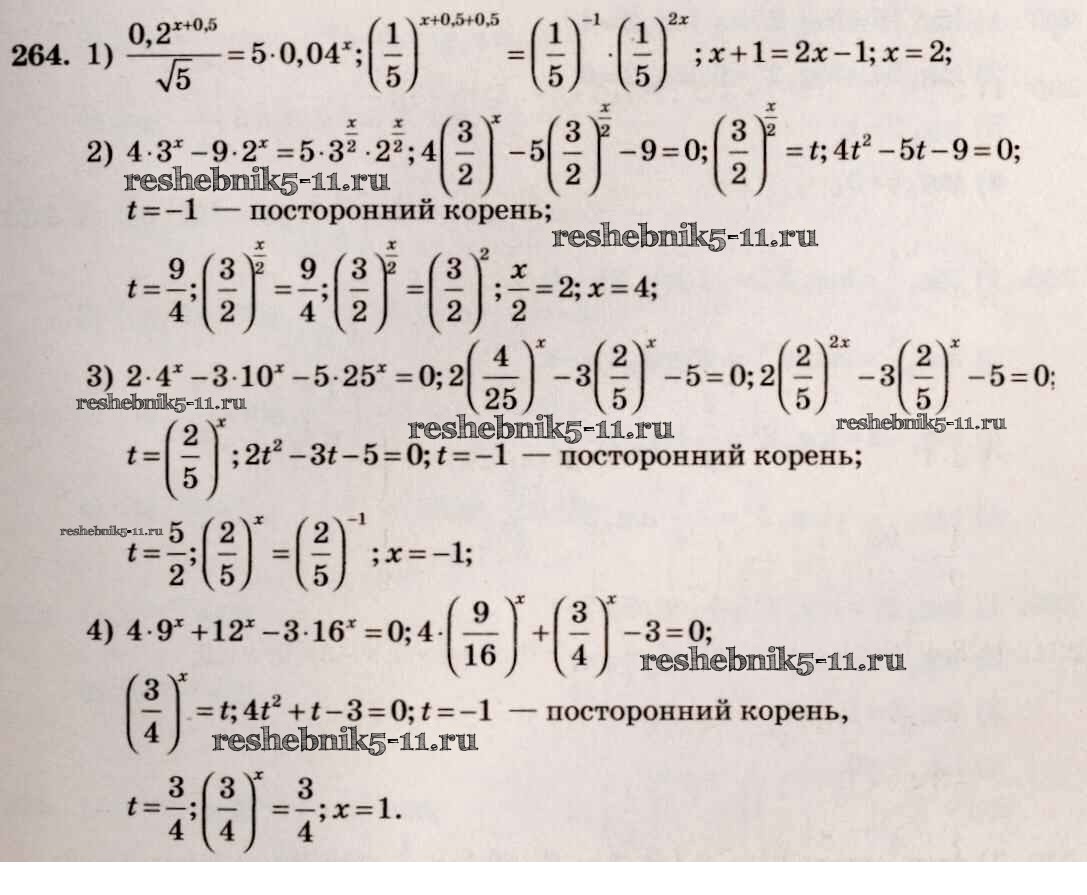 Готовая домашняя работа с ответами по Алгебре за 10, 11 класс Алимов, Ткачева, Колягин, Федорова, Шабунин Учебник Базовый и углубленный уровень Просвещение 2015 ФГОС - Упражнения 264