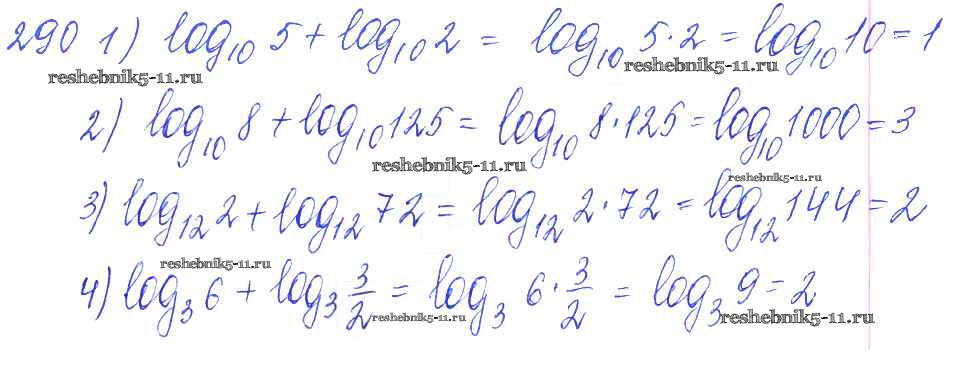 Готовая домашняя работа с ответами по Алгебре за 10, 11 класс Алимов, Ткачева, Колягин, Федорова, Шабунин Учебник Базовый и углубленный уровень Просвещение 2015 ФГОС - Упражнения 290
