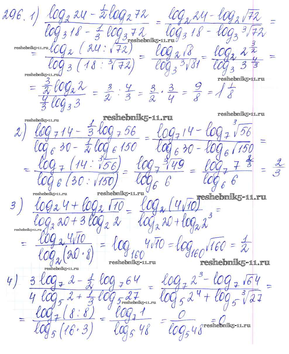 Готовая домашняя работа с ответами по Алгебре за 10, 11 класс Алимов, Ткачева, Колягин, Федорова, Шабунин Учебник Базовый и углубленный уровень Просвещение 2015 ФГОС - Упражнения 296