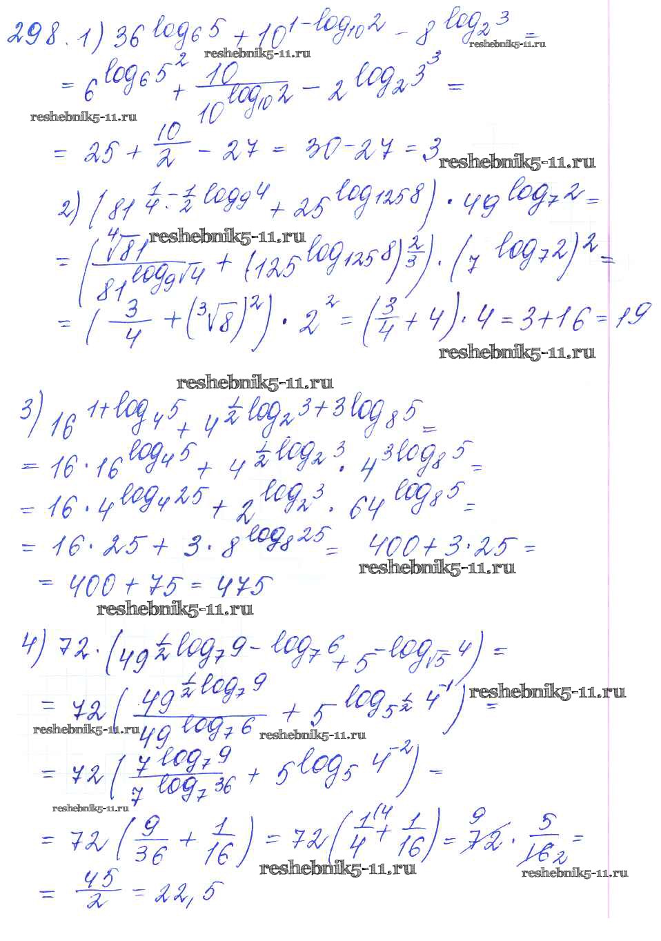 Готовая домашняя работа с ответами по Алгебре за 10, 11 класс Алимов, Ткачева, Колягин, Федорова, Шабунин Учебник Базовый и углубленный уровень Просвещение 2015 ФГОС - Упражнения 298