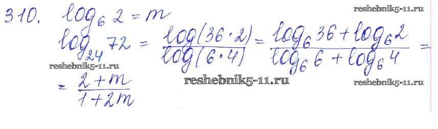 Готовая домашняя работа с ответами по Алгебре за 10, 11 класс Алимов, Ткачева, Колягин, Федорова, Шабунин Учебник Базовый и углубленный уровень Просвещение 2015 ФГОС - Упражнения 310