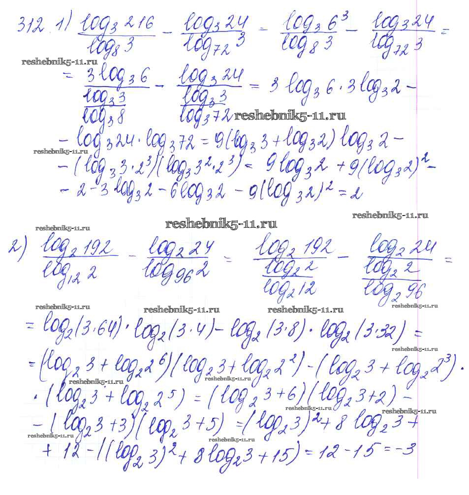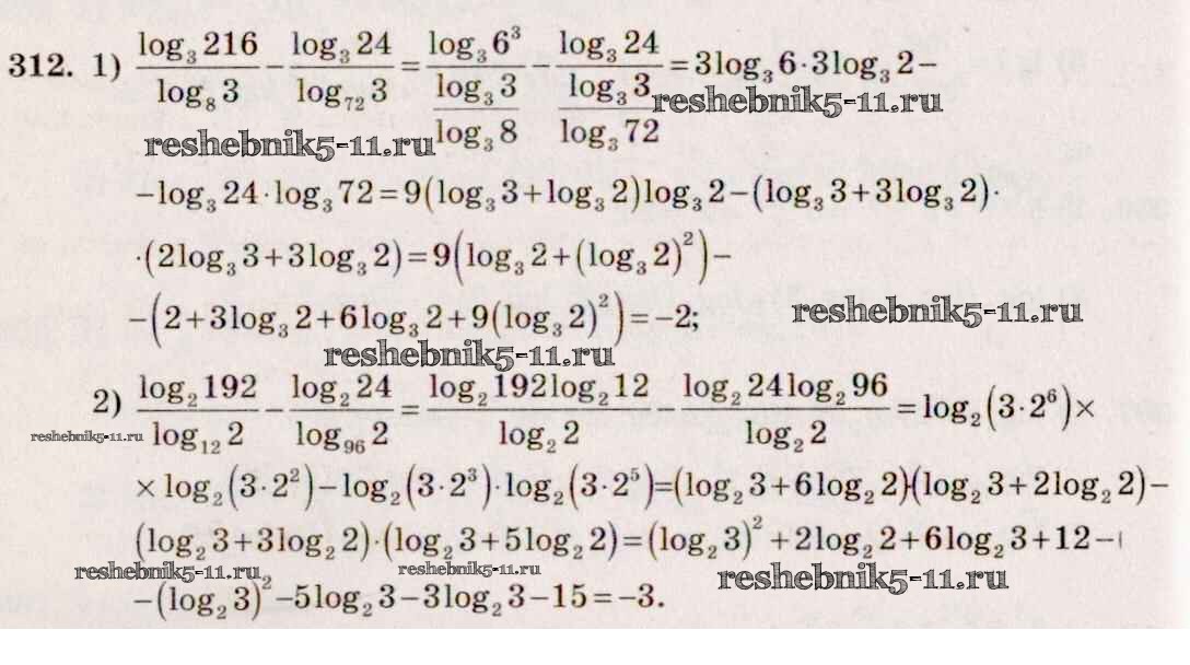 Готовая домашняя работа с ответами по Алгебре за 10, 11 класс Алимов, Ткачева, Колягин, Федорова, Шабунин Учебник Базовый и углубленный уровень Просвещение 2015 ФГОС - Упражнения 312