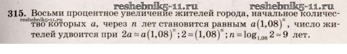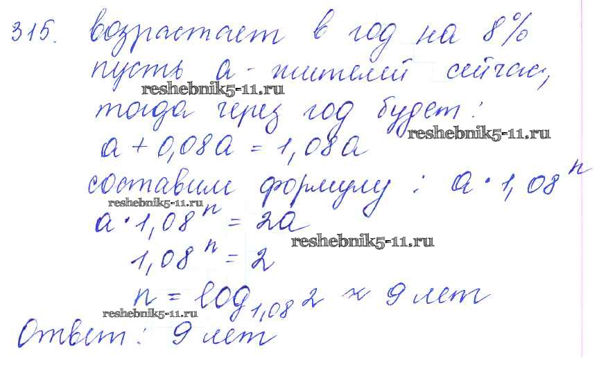 Готовая домашняя работа с ответами по Алгебре за 10, 11 класс Алимов, Ткачева, Колягин, Федорова, Шабунин Учебник Базовый и углубленный уровень Просвещение 2015 ФГОС - Упражнения 315