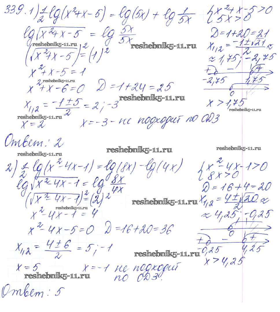 Готовая домашняя работа с ответами по Алгебре за 10, 11 класс Алимов, Ткачева, Колягин, Федорова, Шабунин Учебник Базовый и углубленный уровень Просвещение 2015 ФГОС - Упражнения 339