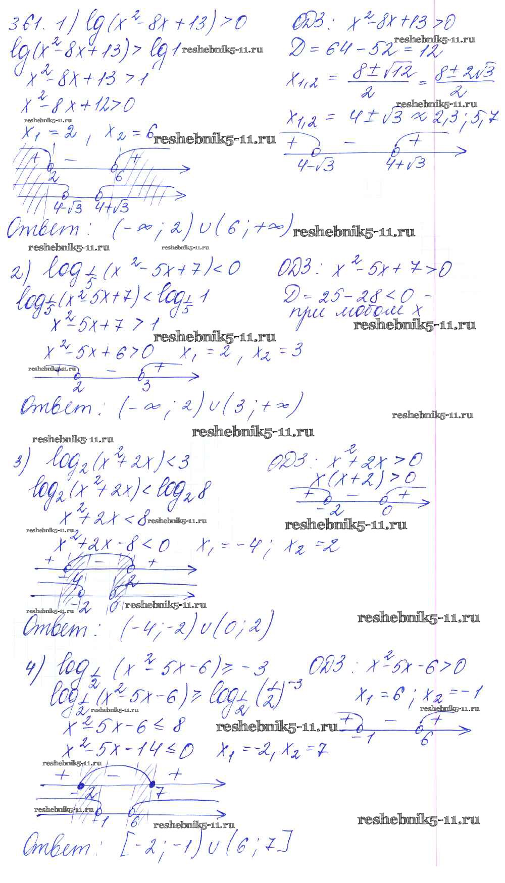 Готовая домашняя работа с ответами по Алгебре за 10, 11 класс Алимов, Ткачева, Колягин, Федорова, Шабунин Учебник Базовый и углубленный уровень Просвещение 2015 ФГОС - Упражнения 361