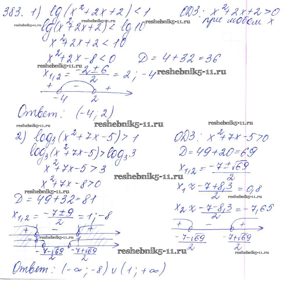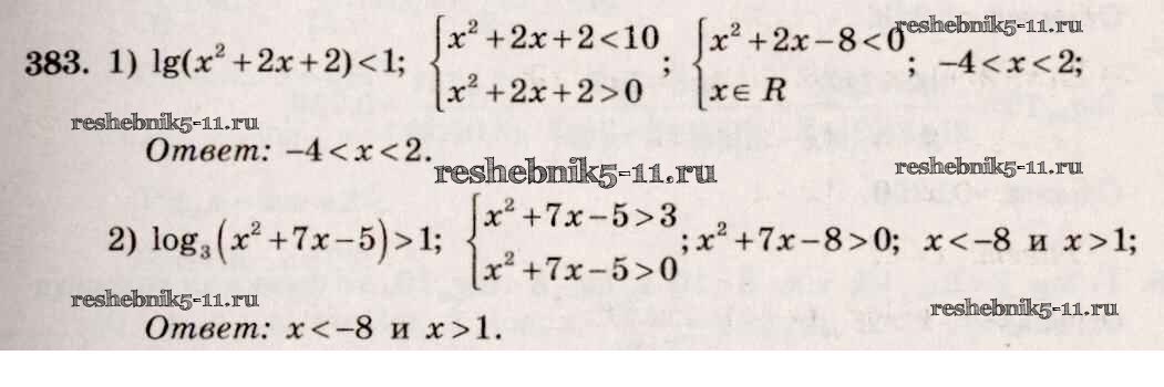 Готовая домашняя работа с ответами по Алгебре за 10, 11 класс Алимов, Ткачева, Колягин, Федорова, Шабунин Учебник Базовый и углубленный уровень Просвещение 2015 ФГОС - Упражнения 383