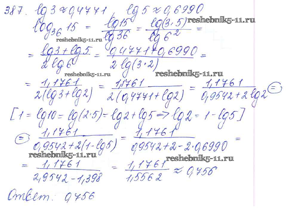 Готовая домашняя работа с ответами по Алгебре за 10, 11 класс Алимов, Ткачева, Колягин, Федорова, Шабунин Учебник Базовый и углубленный уровень Просвещение 2015 ФГОС - Упражнения 387