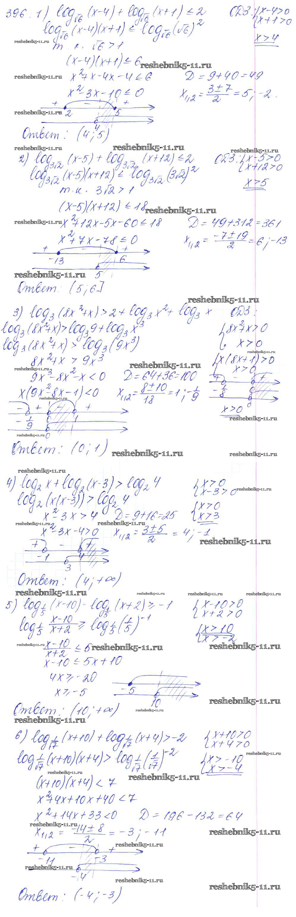 Готовая домашняя работа с ответами по Алгебре за 10, 11 класс Алимов, Ткачева, Колягин, Федорова, Шабунин Учебник Базовый и углубленный уровень Просвещение 2015 ФГОС - Упражнения 396