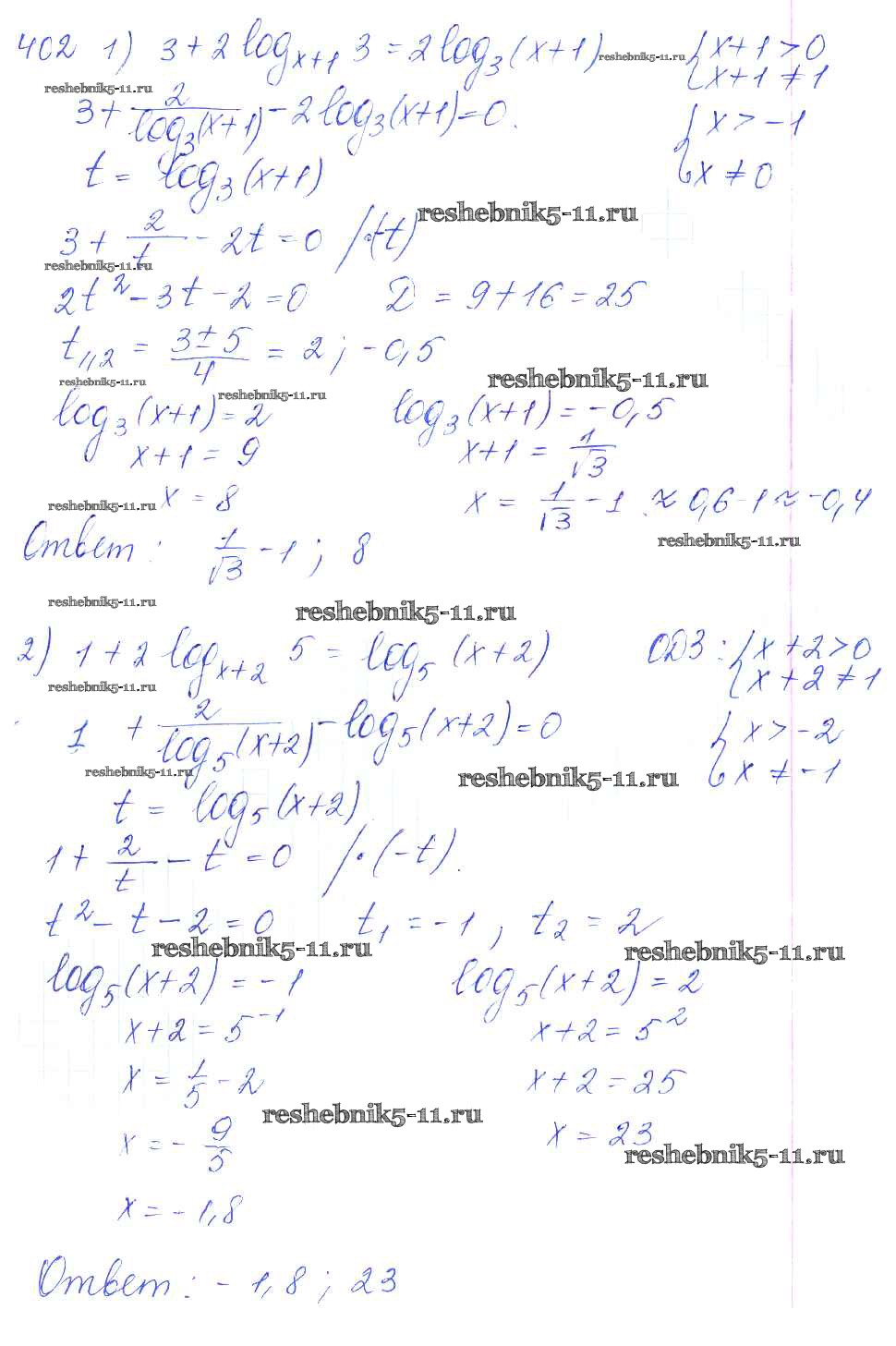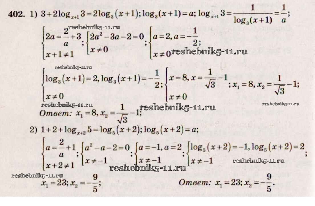 Готовая домашняя работа с ответами по Алгебре за 10, 11 класс Алимов, Ткачева, Колягин, Федорова, Шабунин Учебник Базовый и углубленный уровень Просвещение 2015 ФГОС - Упражнения 402